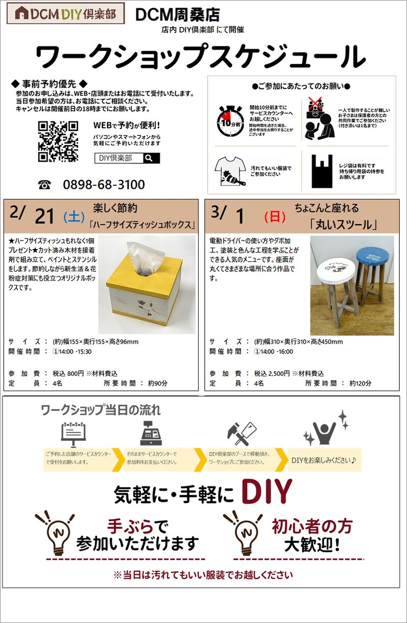『2月のDIY教室スケジュール(周桑店)』のご案内