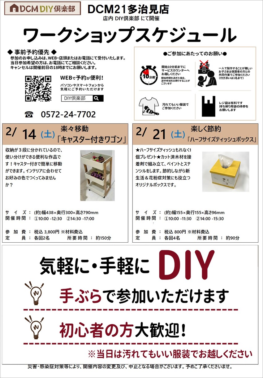 『2月のDIY教室スケジュール(多治見店)』のご案内