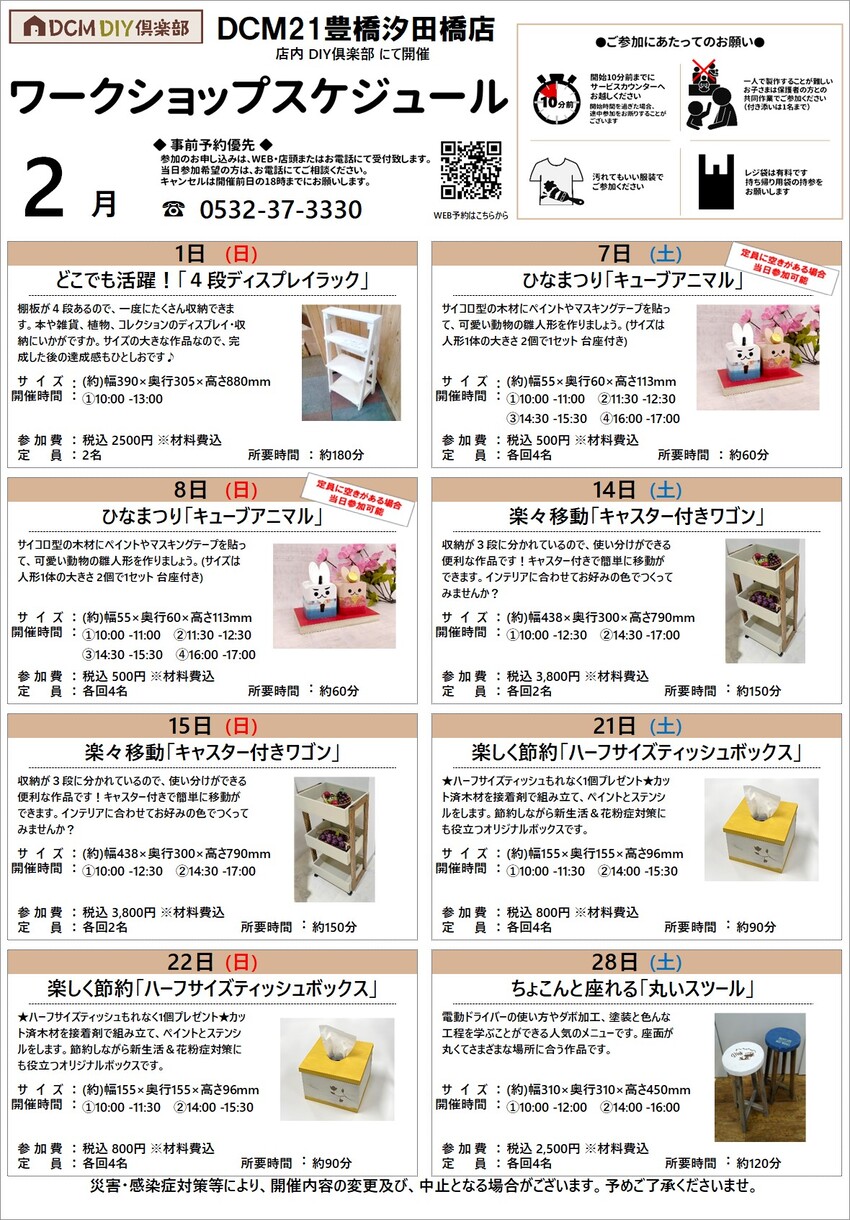 『2月のDIY教室スケジュール(豊橋汐田橋店)』のご案内