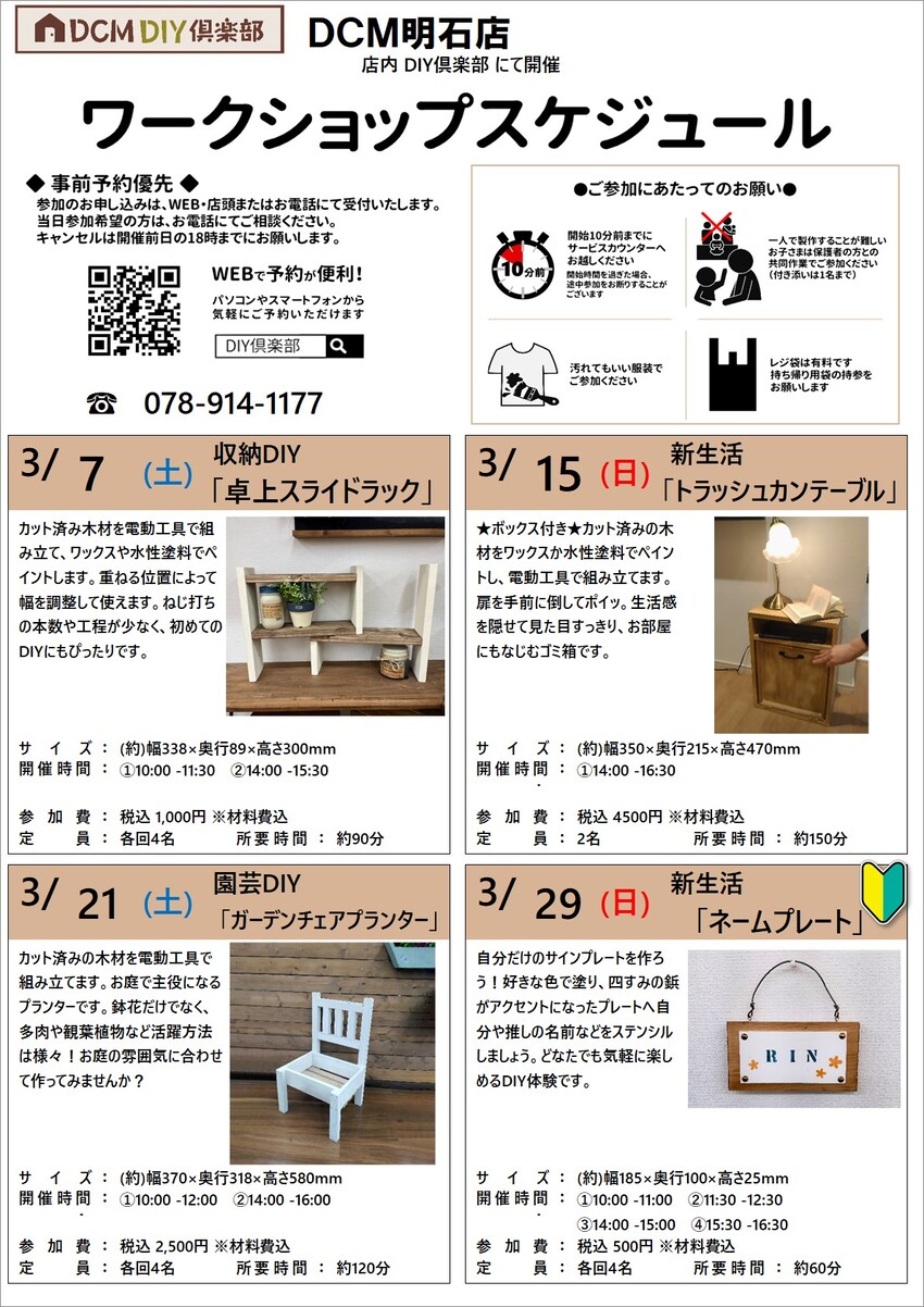 『3月のDIY教室スケジュール(明石店)』のご案内
