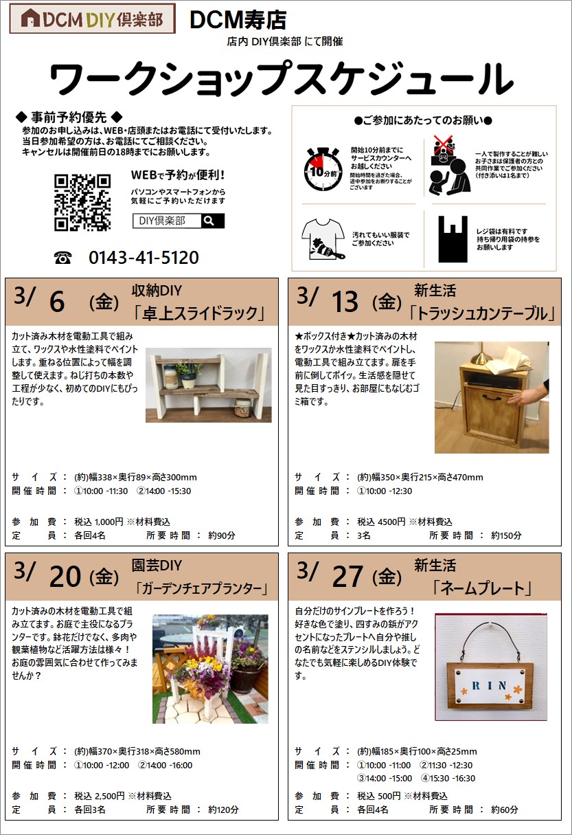 『3月のDIY教室スケジュール(寿店)』のご案内
