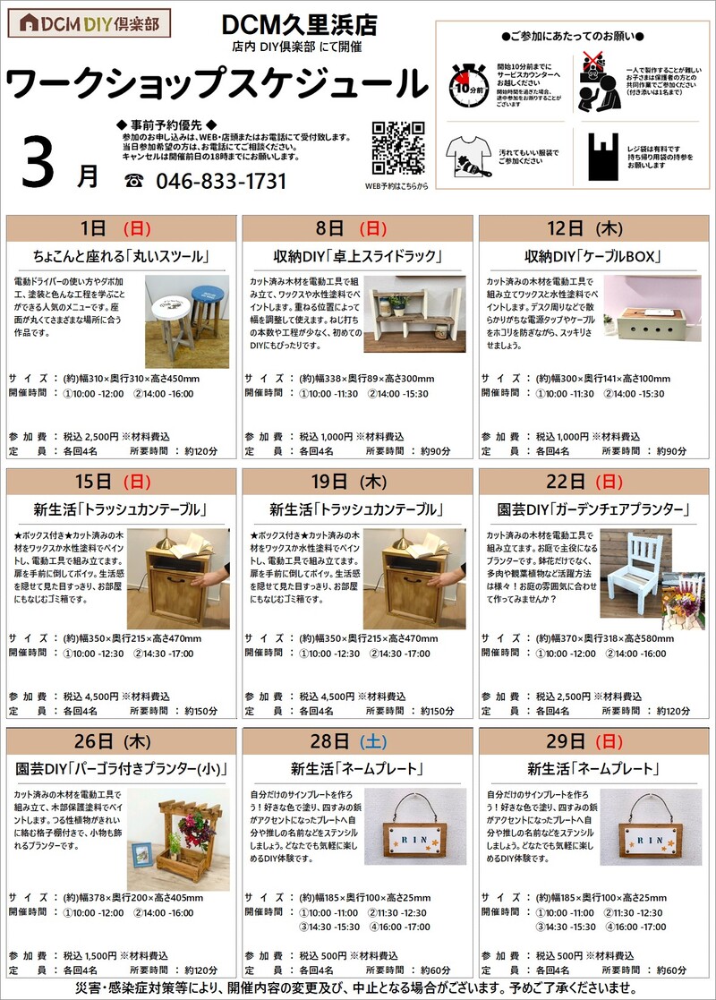 『3月のDIY教室スケジュール(久里浜店)』のご案内