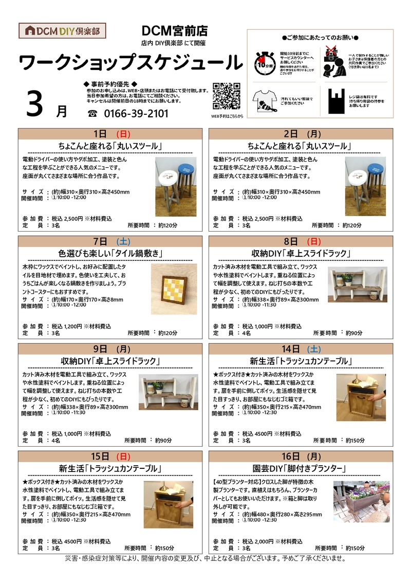 『3月のDIY教室スケジュール(宮前店)』のご案内