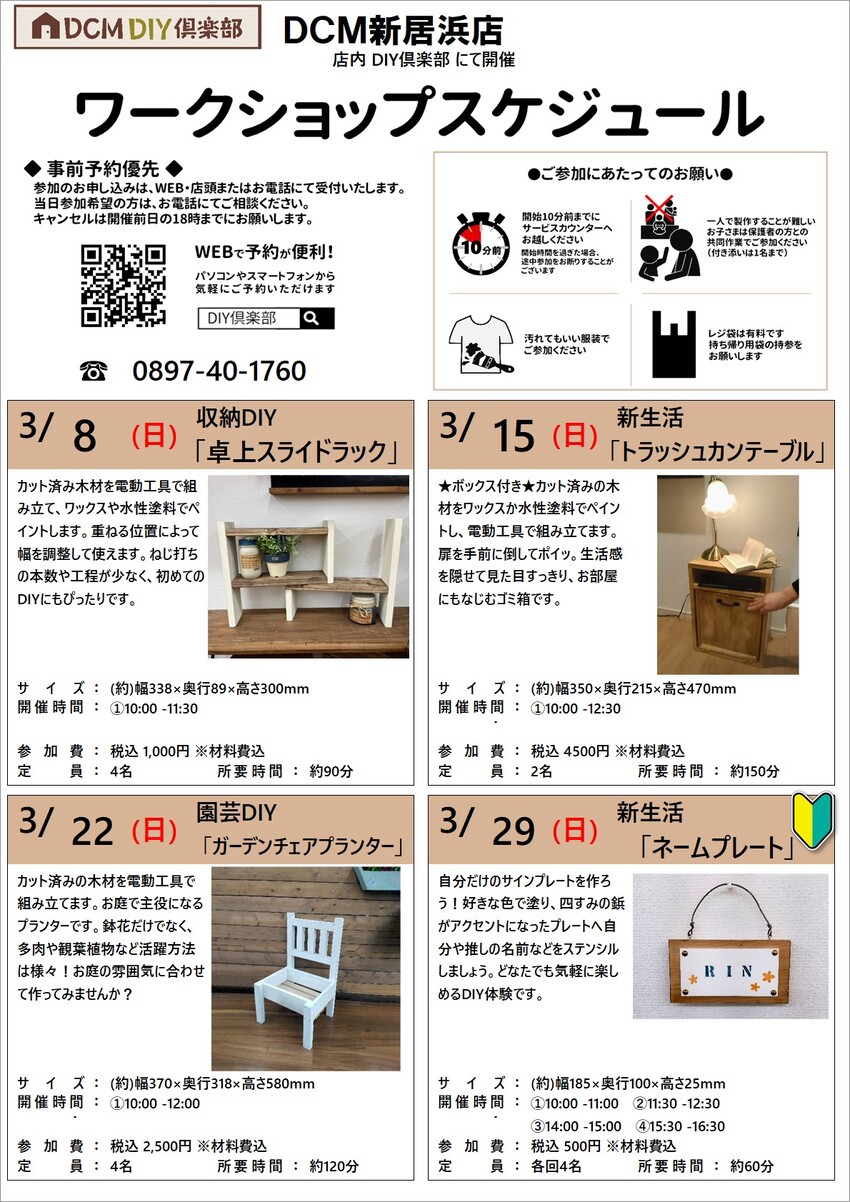 『3月のDIY教室スケジュール(新居浜店)』のご案内