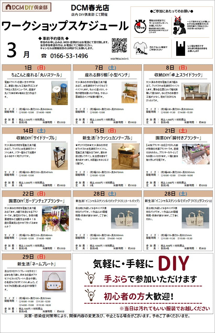 『3月のDIY教室スケジュール(春光店)』のご案内