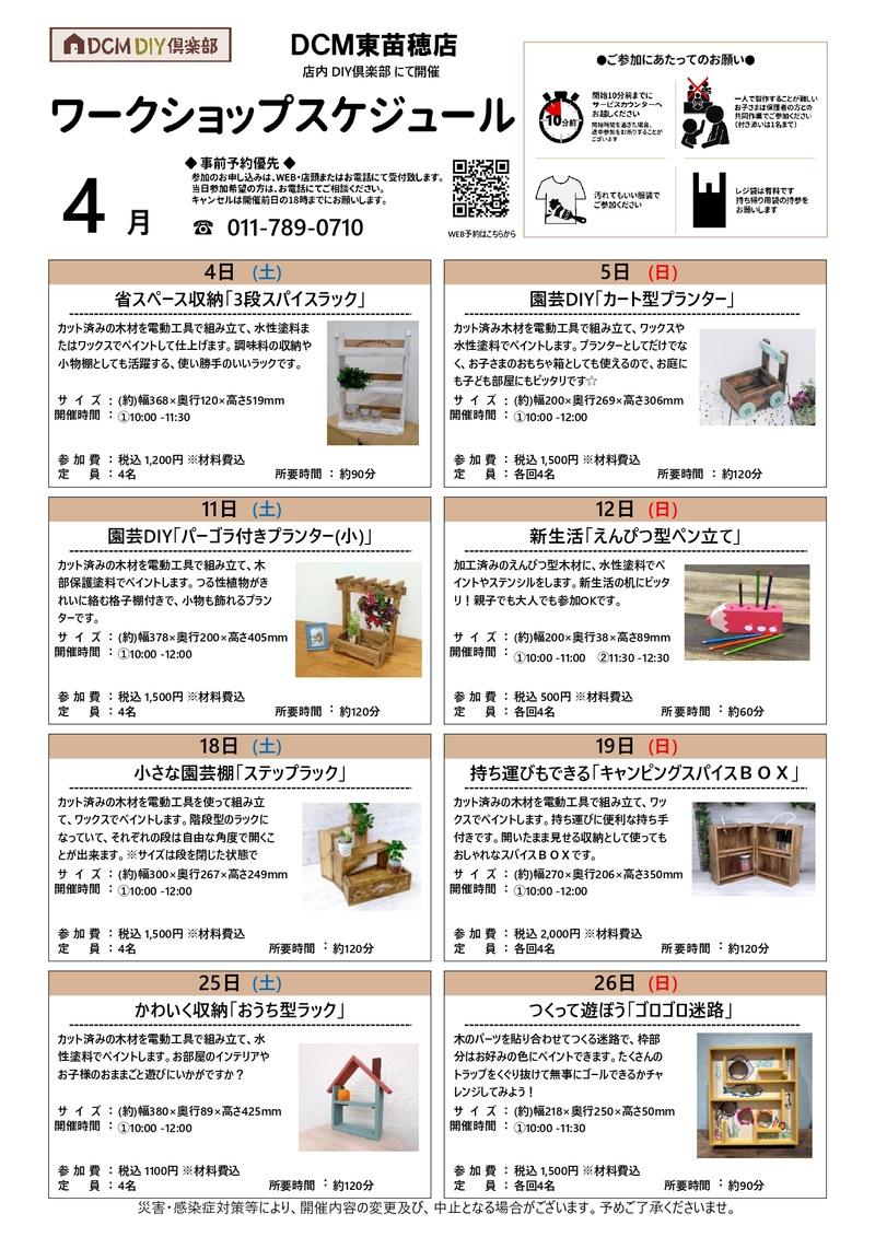 『4月のDIY教室スケジュール(東苗穂店)』のご案内