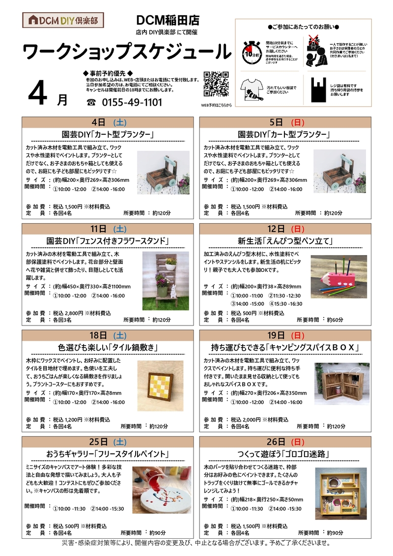 『4月のDIY教室スケジュール(稲田店)』のご案内