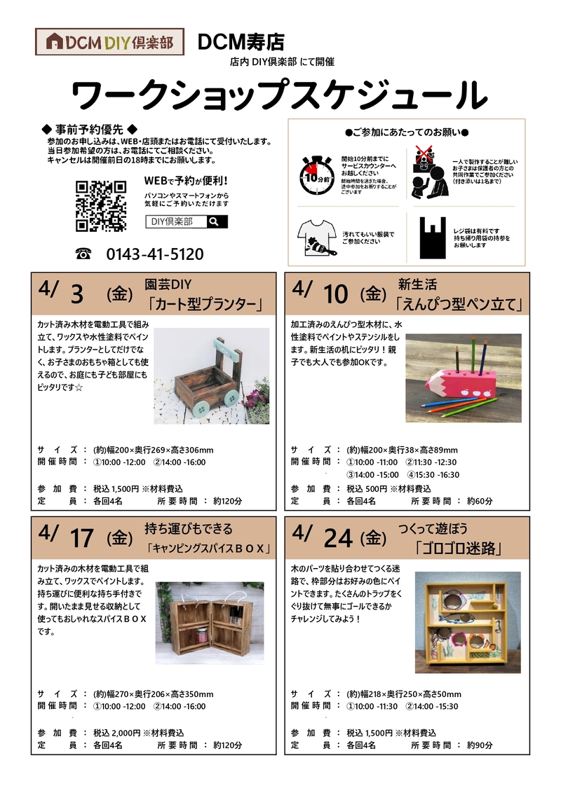 『4月のDIY教室スケジュール(寿店)』のご案内