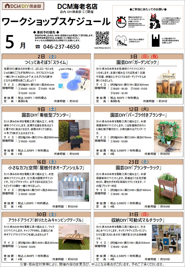 『5月のDIY教室スケジュール(海老名店)』のご案内