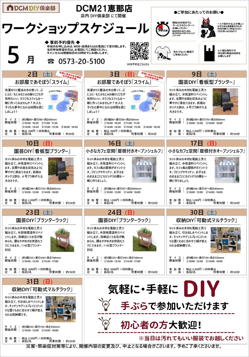 『5月のDIY教室スケジュール(恵那店)』のご案内