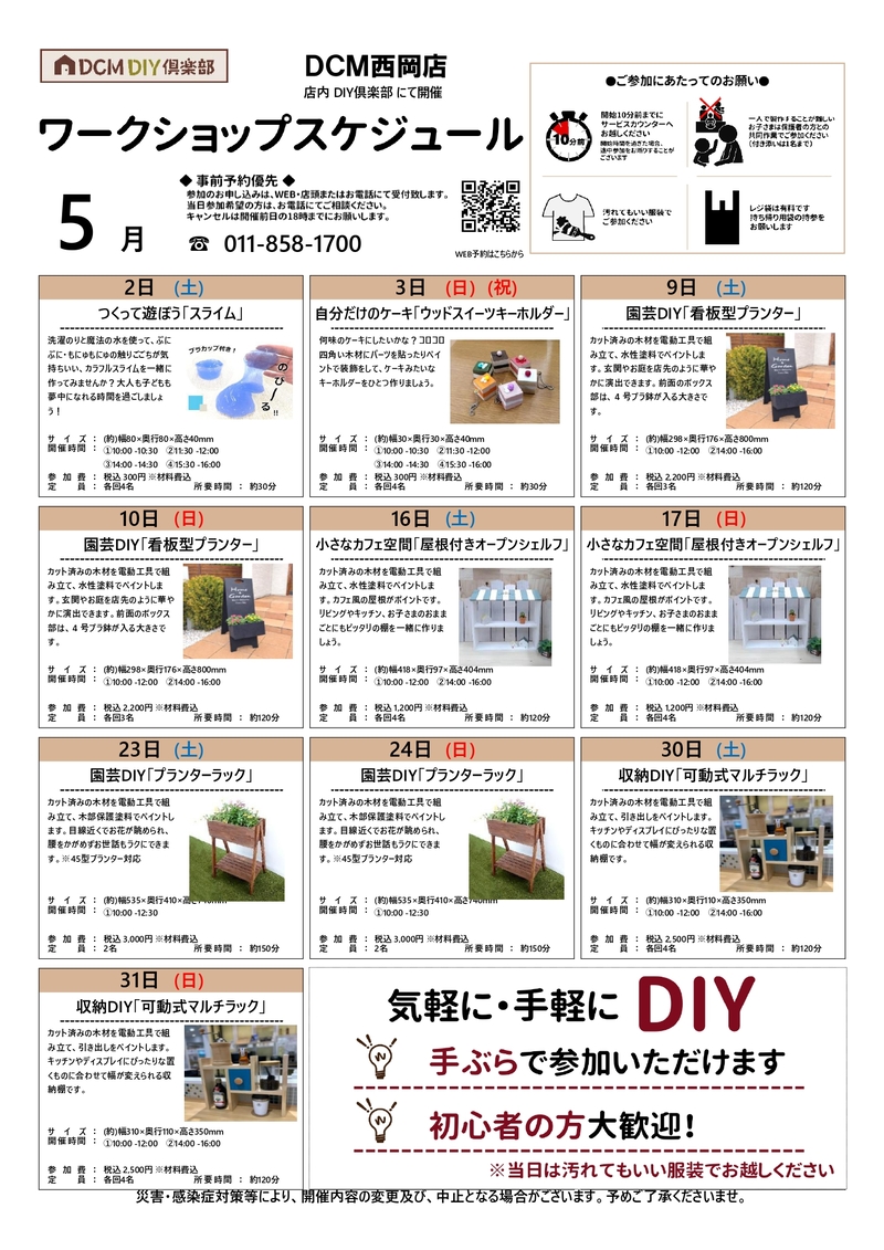 『5月のDIY教室スケジュール(西岡店)』のご案内