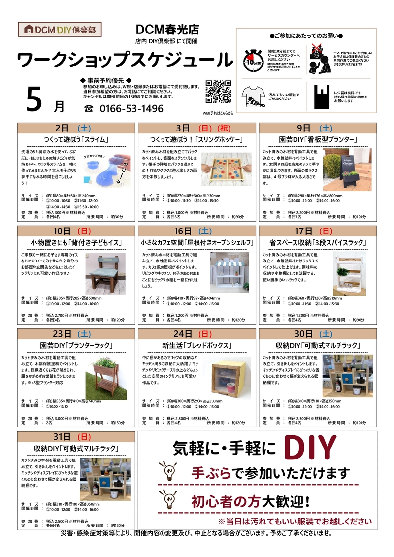 『5月のDIY教室スケジュール(春光店)』のご案内