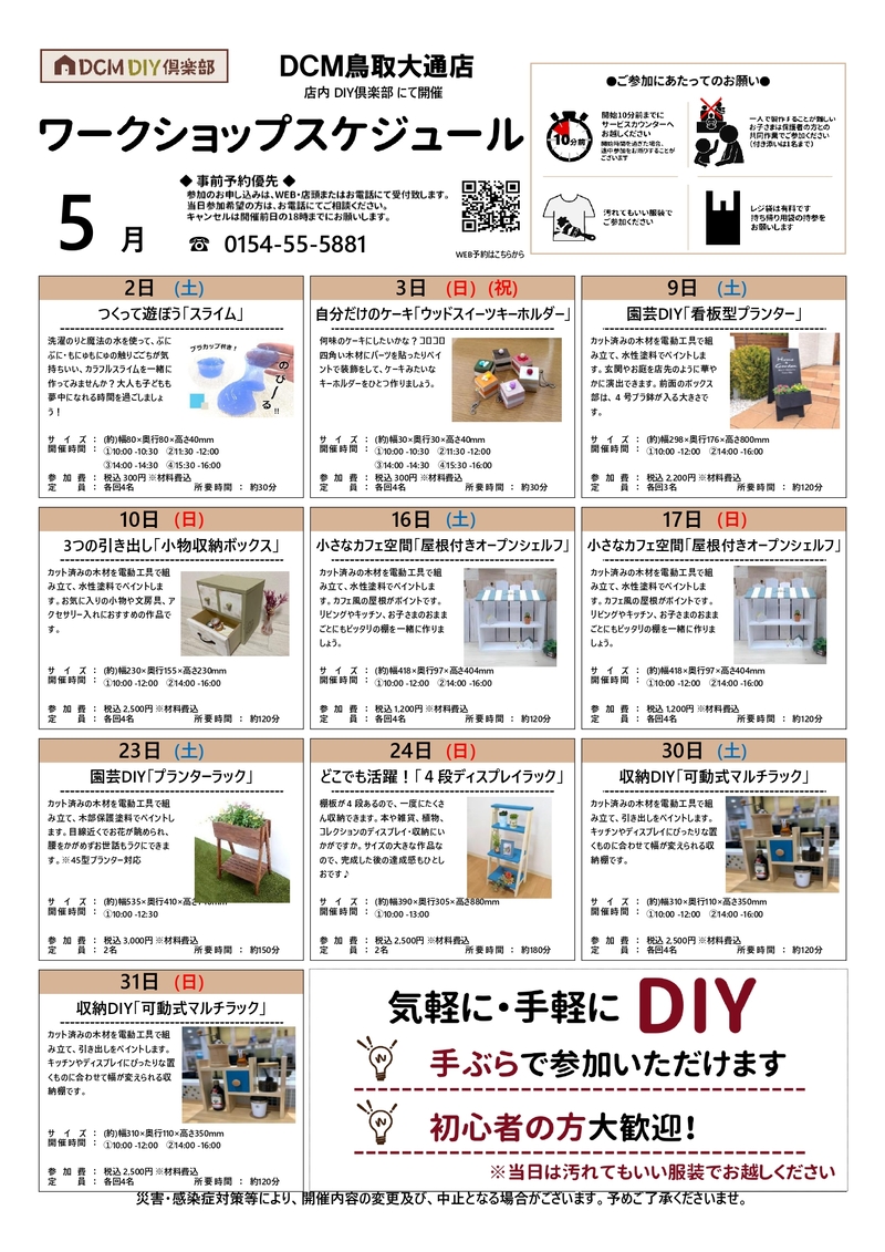 『5月のDIY教室スケジュール(鳥取大通店)』のご案内