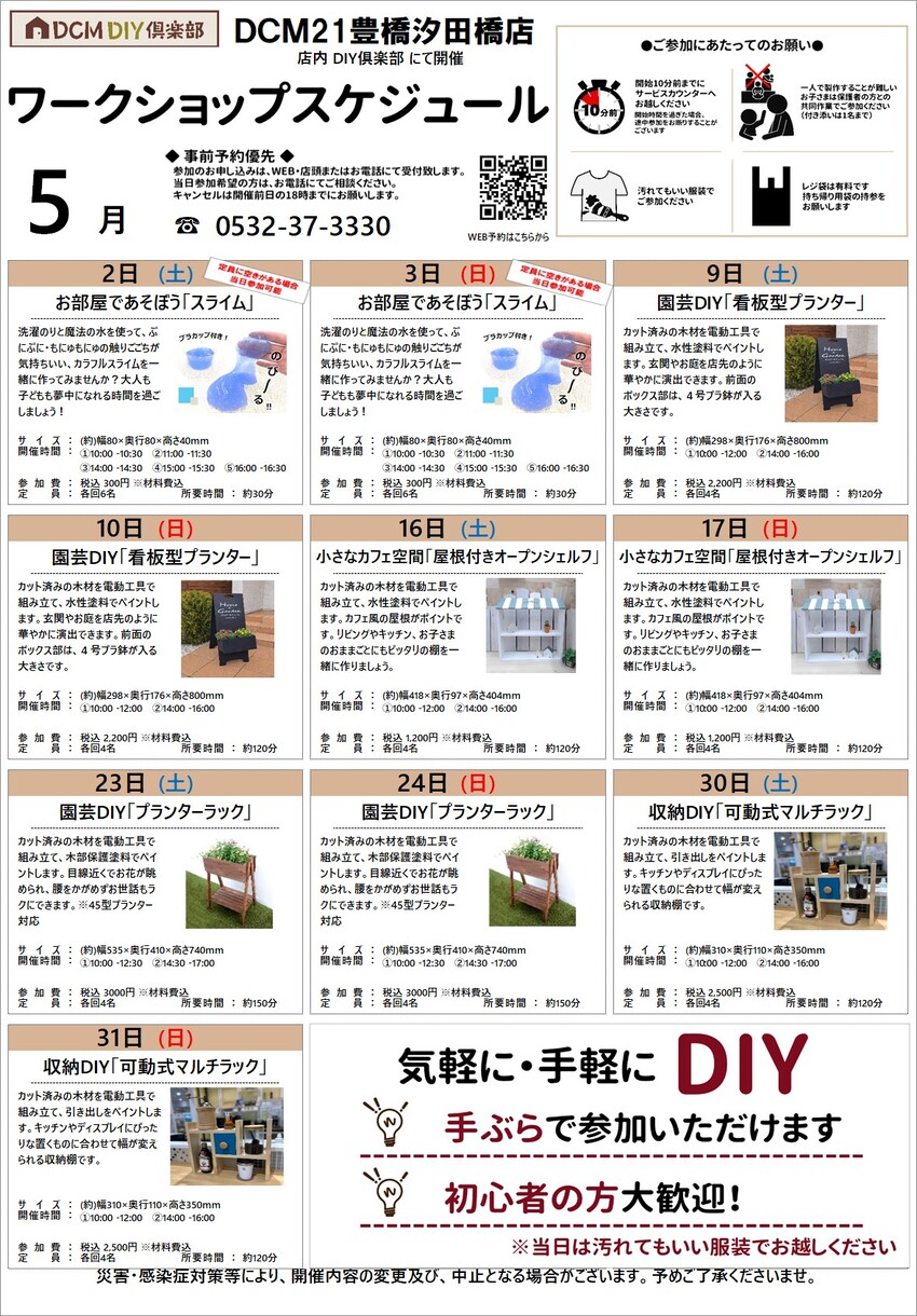 『5月のDIY教室スケジュール(豊橋汐田橋店)』のご案内