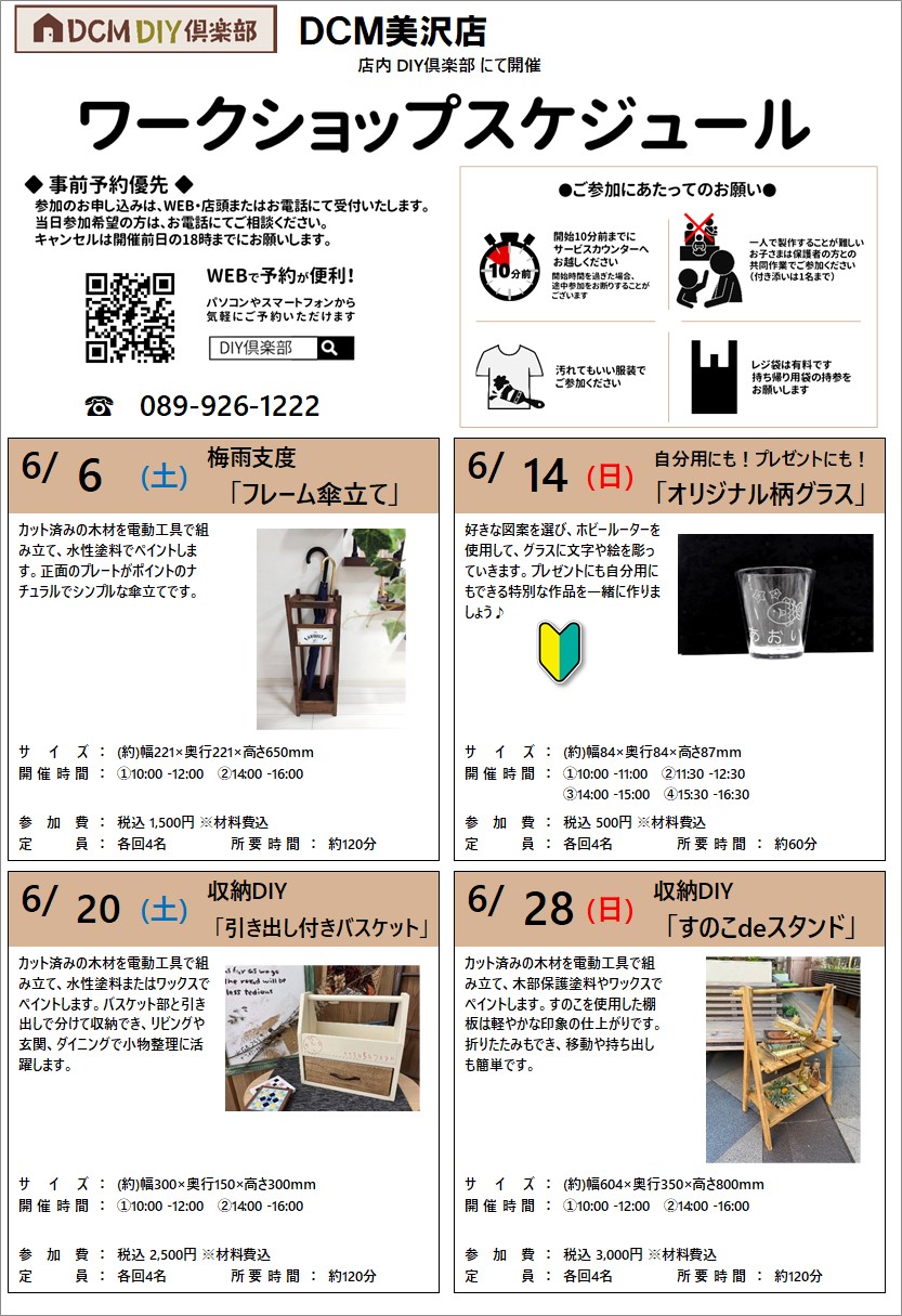 『6月のDIY教室スケジュール(美沢店)』のご案内