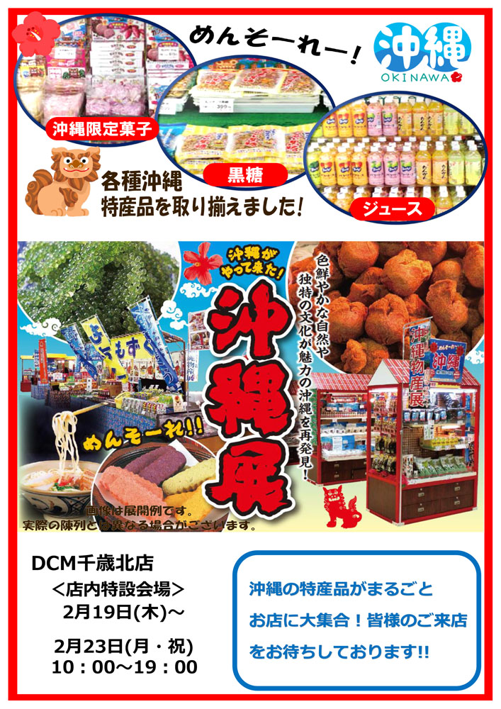 開催日 02月19日(木)~02月23日(月) 開催時間 10:00~19:00 開催場所 DCM千歳北店