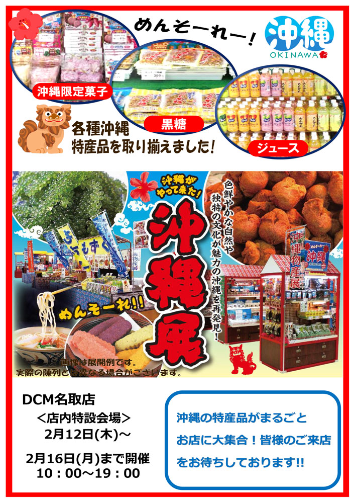 開催日 02月12日(木)~02月16日(月) 開催時間 10:00~19:00 開催場所 DCM名取店
