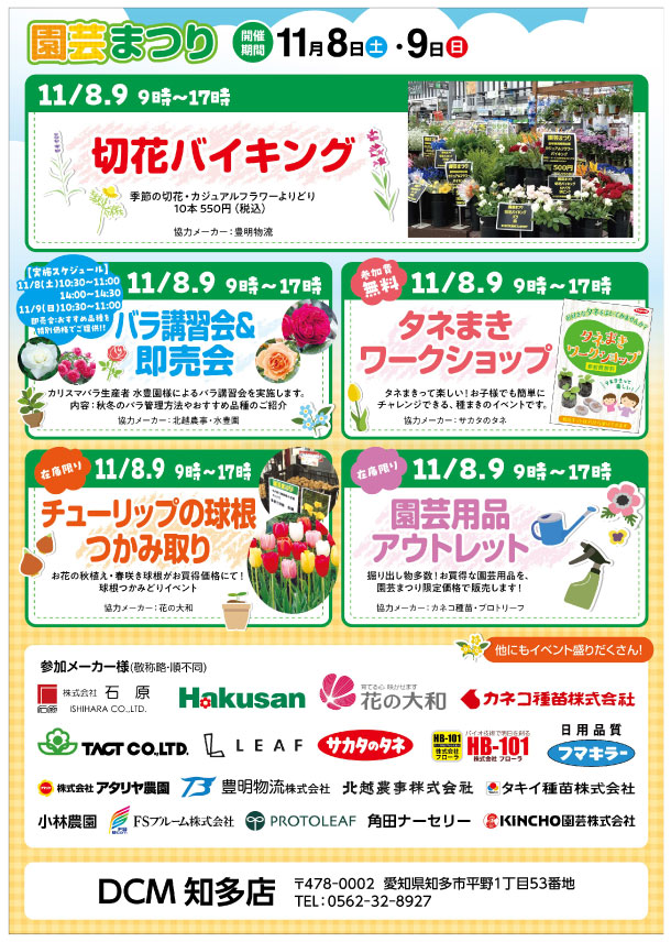 開催日 11月08日(土)~11月09日(日) 開催時間 9:00~17:00 開催場所 店内・外売場特設会場
