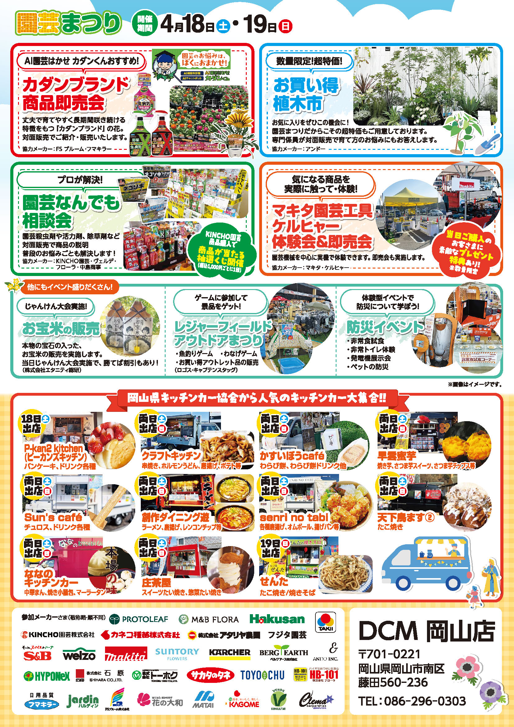 開催日 04月18日(土)~04月19日(日) 開催時間 9:00~17:00(最終日は15:00まで) 開催場所 DCM岡山店 店内・外売場特設会場