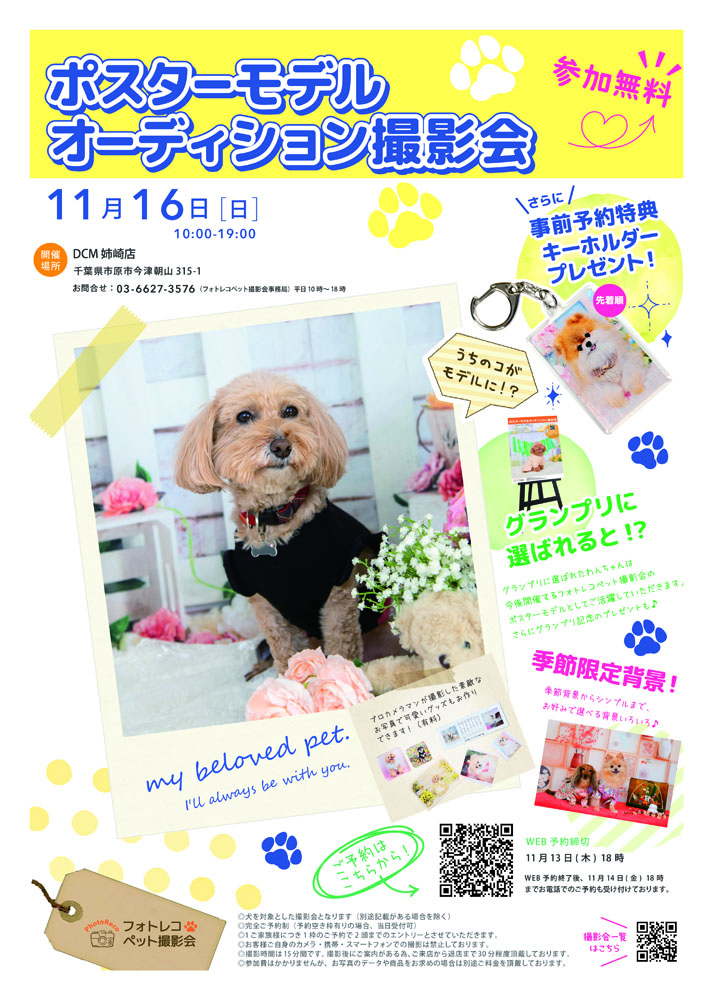 グランプリに選ばれたワンちゃんはDCMで開催するフォトレコペット撮影会のポスターモデルとしてご活躍していただきます!