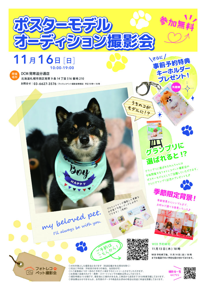 グランプリに選ばれたワンちゃんはDCMで開催するフォトレコペット撮影会のポスターモデルとしてご活躍していただきます!