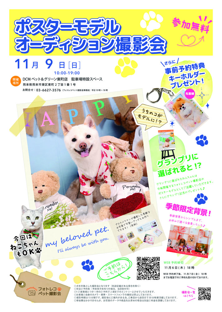 グランプリに選ばれたワンちゃんはDCMで開催するフォトレコペット撮影会のポスターモデルとしてご活躍していただきます!