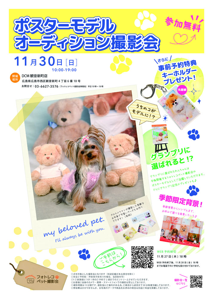 グランプリに選ばれたワンちゃんはDCMで開催するフォトレコペット撮影会のポスターモデルとしてご活躍していただきます!