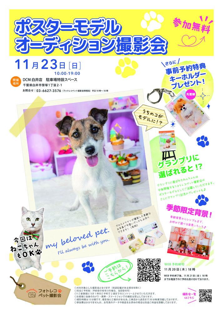 グランプリに選ばれたワンちゃんはDCMで開催するフォトレコペット撮影会のポスターモデルとしてご活躍していただきます!