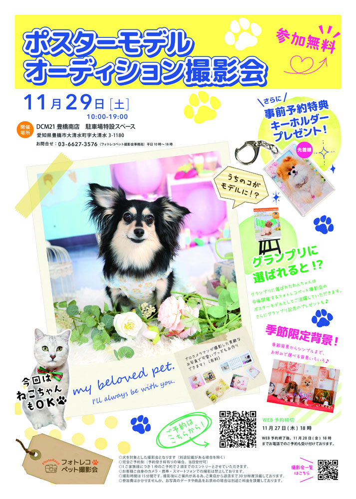 グランプリに選ばれたワンちゃんはDCMで開催するフォトレコペット撮影会のポスターモデルとしてご活躍していただきます!