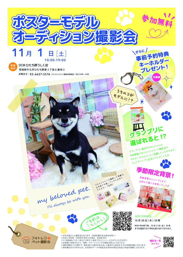 グランプリに選ばれたワンちゃんはDCMで開催するフォトレコペット撮影会のポスターモデルとしてご活躍していただきます!