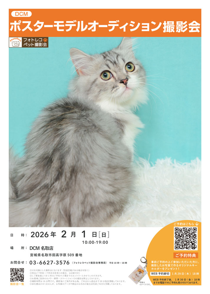 【参加無料】ペットポスターモデルオーディション撮影会