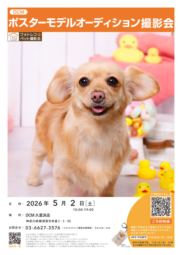 【参加無料】ペットポスターモデルオーディション撮影会