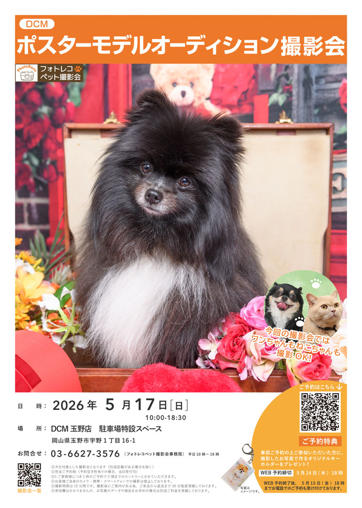 【参加無料】ペットポスターモデルオーディション撮影会