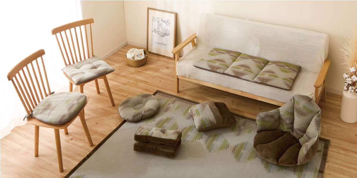 クッション、ラグ、こたつ布団、寝具、暖房用品など