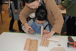 はじめに作業工程を細かく丁寧に説明。「組立から始めますが、電動ドリルを使うのは始めての方はいますか?」と初心者の方にもとっても優しいです。