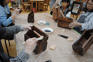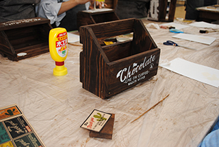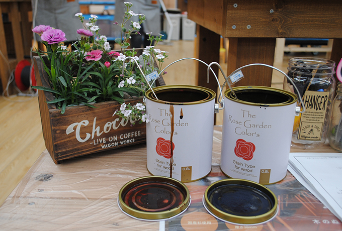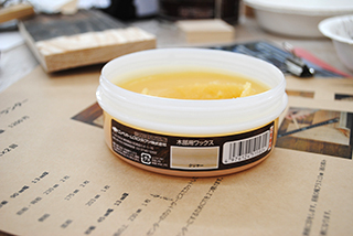 エイジング(時間が経過したような風合いを演出するテクニック)金ブラシやハンマーで木の角をたたいたり表面にキズをつけたりします。こうすることでとても味わいが出ます。