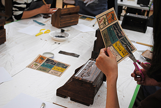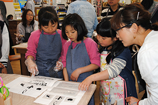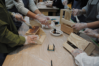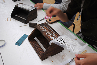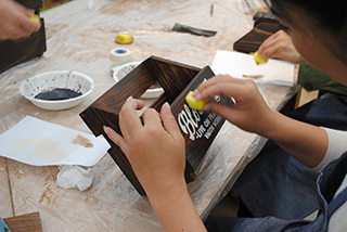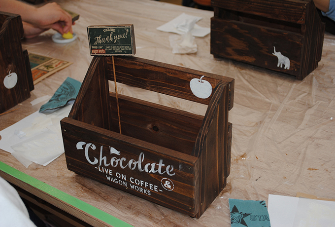 ワークショップではお馴染みのステンシル。今回もchikoさんオリジナルの素敵なデザインです♪皆さんあっという間にコツをつかんで、とってもキレイにステンシルが進みます♪