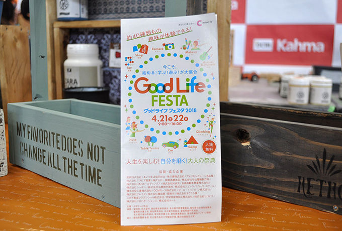 4月21(土)~22(日) の二日間、名古屋市の吹上ホールにて開催された中京テレビ放送主催『Good Life FESTA 2018(グッドライフフェスタ)2018』に、DCMカーマが出展いたしました!このイベントへの出展は昨年に続き今年で2回目。今年は「出張!みんなの工作室」と題し、大人気のDIYアイテムや花材のメーカー様とコラボしたイベントを2日間に渡って開催!たくさんのお客様にお越しいただきました♪