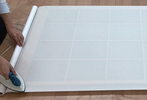 のりを使わず、紙の上からアイロンをかけて貼っていくので簡単。熱いうちならすぐにはがれるので、やり直しも利いてラクに貼り替えられます。