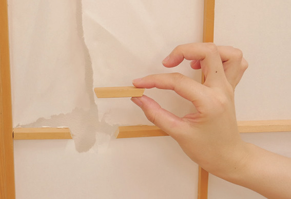 細くてデリケートな障子の桟は、思わぬことで折れるもの。そのままにしておくと、障子全体のゆがみのもとになるので、折れた部分がなくなる前に直しておきましょう。