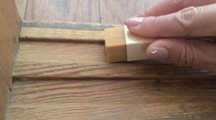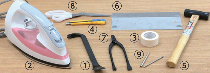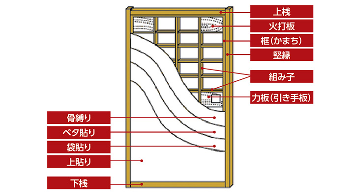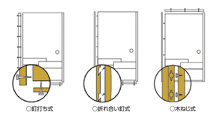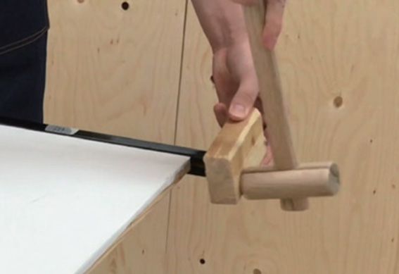 ②左右枠は通常折れ合い釘で止まっており、上から下へ木槌で、あて木をして叩くと外れます。(外した枠がどの部分かわかるように印を付けておきましょう。)