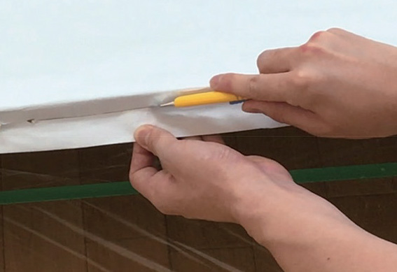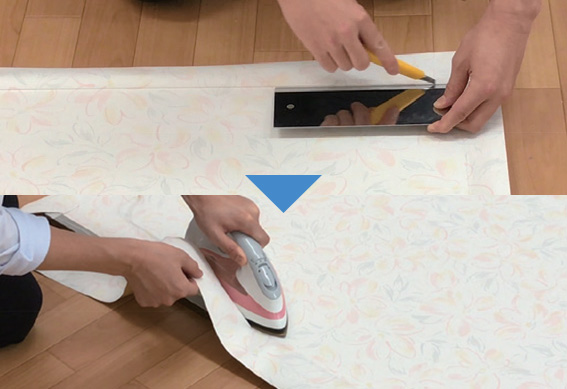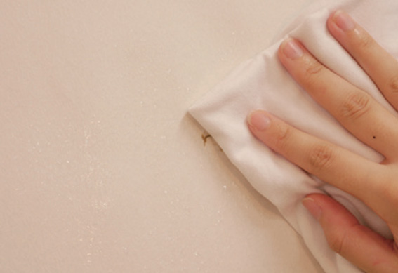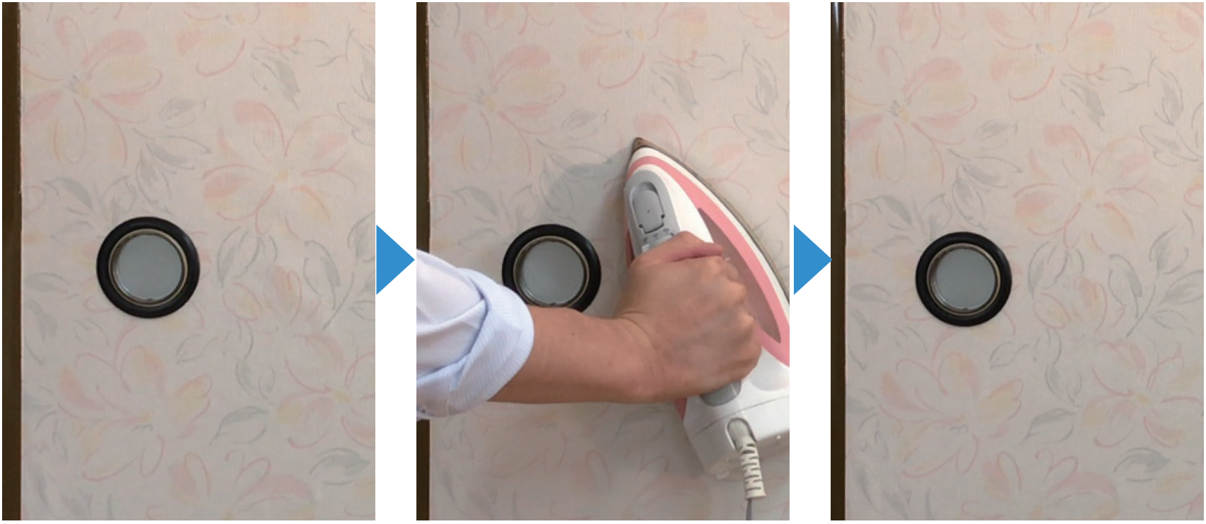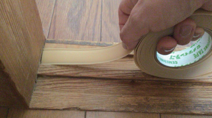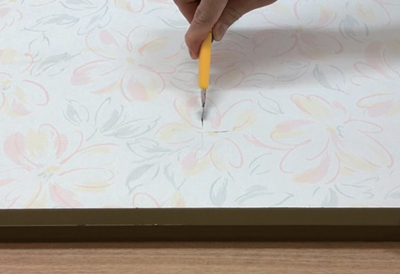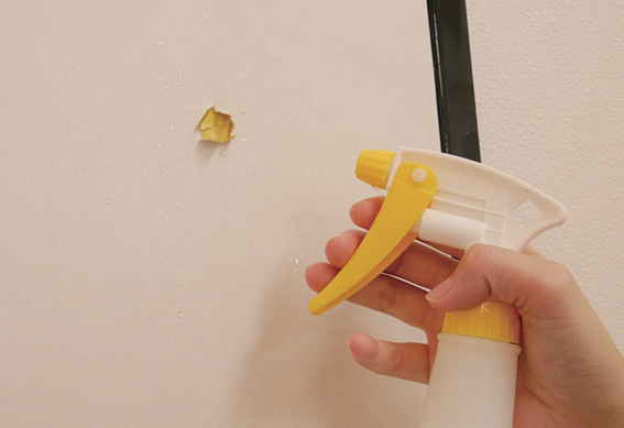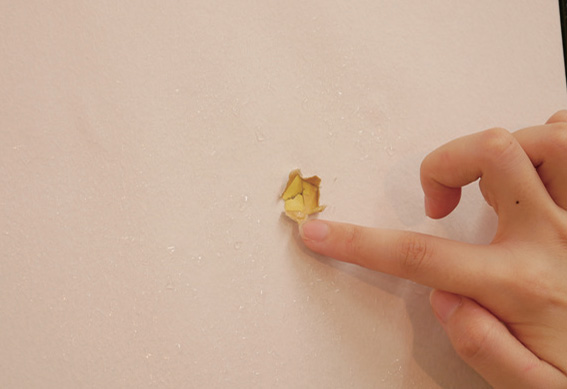 ③ 穴が開いているところはふすま用補修紙を貼って平らにします。⇒