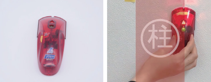 音と光で柱の位置をキャッチできるのが壁内センサー。
