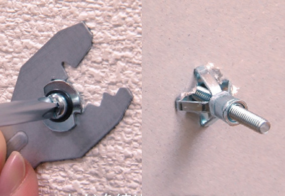 ねじや釘の使えない中空構造の壁や天井への器具の取り付けに最適です。