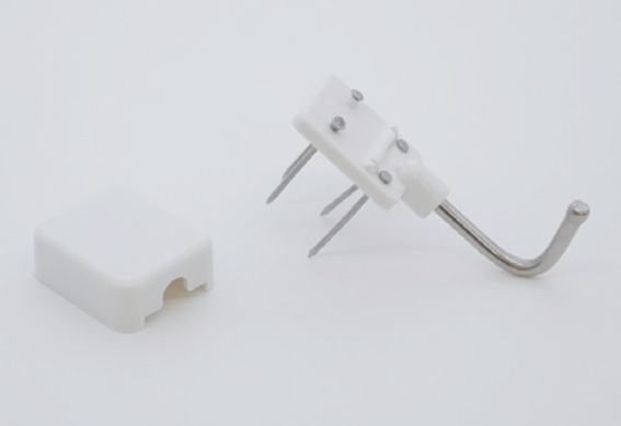 ドリルで開けた穴に、羽根を閉じたトグラーを押し込み、付属のピンを差すと壁の向こうで羽根が開くもの。羽根が開いているところにフックを取り付ければ、支柱と同じように固定します。
