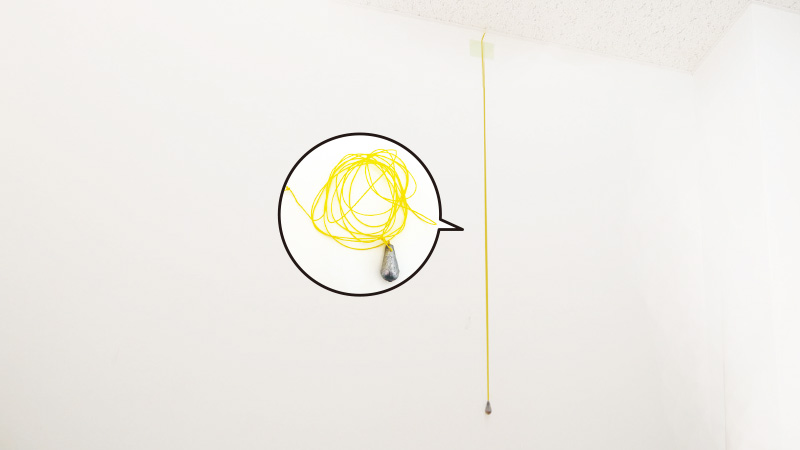 ①-1. 1枚目の壁紙を貼る位置に「下げ振り」を下げ、垂直に線を引きます。