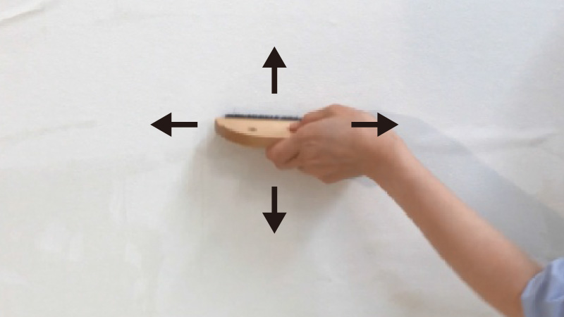 ③ 撫で刷毛などを使って、中心から外側に向かって上下左右に撫で、壁紙の中に残った空気を押し出します。