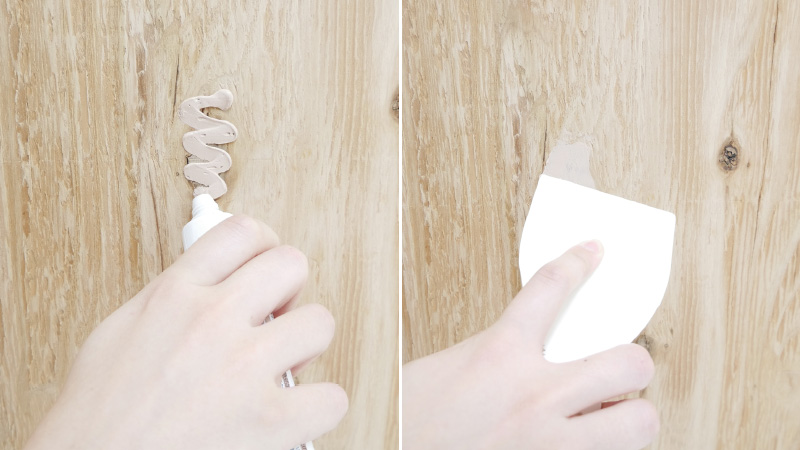 小さな穴の場合は、穴埋め材で穴を埋めます。壁の色に合わせて、穴埋め材を選びます。ヘラで穴埋め材を平らにならします。