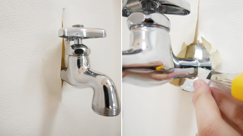 切りとった部分から古い壁紙をはがし、残った新しい壁紙を補修部分にもう一度貼って、乾かします。