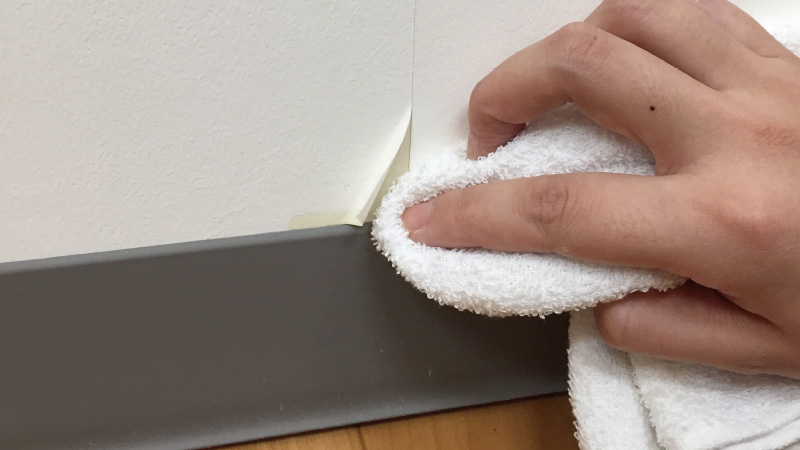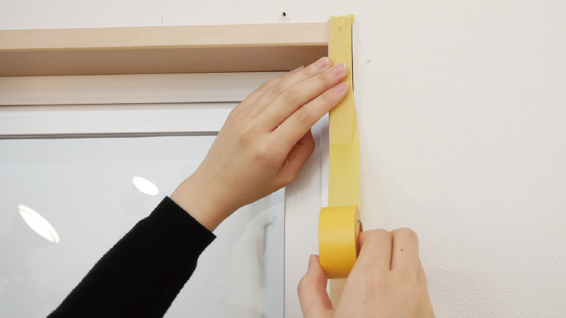 天井際・ドア枠などのりが付きそうなところは、あらかじめマスキングしておきます。
